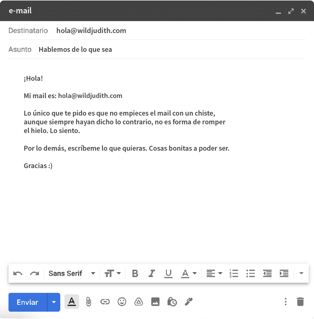 · Envíame un mail: hola@wildjudith.com· Si prefieres los MD, este es mi Instagram: @wildjudi· Soy gen z (más o menos), también estoy en tiktok: @wildjudi· ¡Conectemos! Este es mi LinkedIn: Judith Vivó
